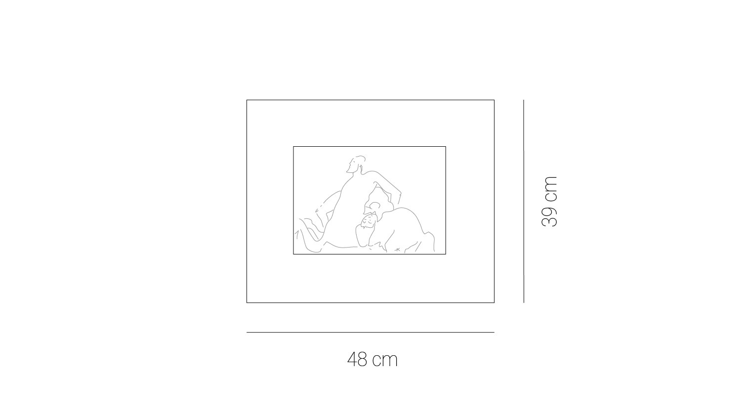 RAPTO es una serigrafía que traduce una narrativa clásica a una composición gráfica sobria. A través de la línea y el contraste, la obra evoca movimiento y tensión, dejando abierta la interpretación.
